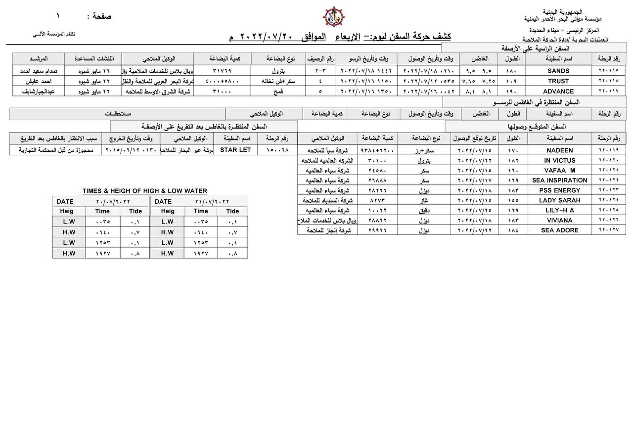 كشف حركة السفن بميناء الحديدة_ الأربعاء - 20/07/2022