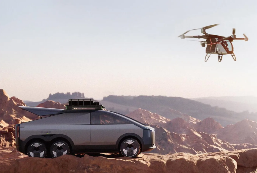 وتشبه المركبة بتصميمها سيارة بيك أب سايبرترك من تسلا، لكن الشركة أكدت عدم الاستلهام المباشر من تصميم تسلا، رغم الأسئلة المتكررة حول هذا الأمر.