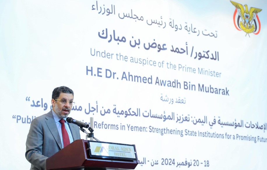رئيس الحكومة الموالية للتحالف اعلن إعادة هيكلة الأمانة العامة لمجلس الوزراء خلال ورشة اقامتها حكومته بالتعاون مع البرنامج الإنمائي للأمم المتحدة تحت شعار الإصلاح المؤسسي .