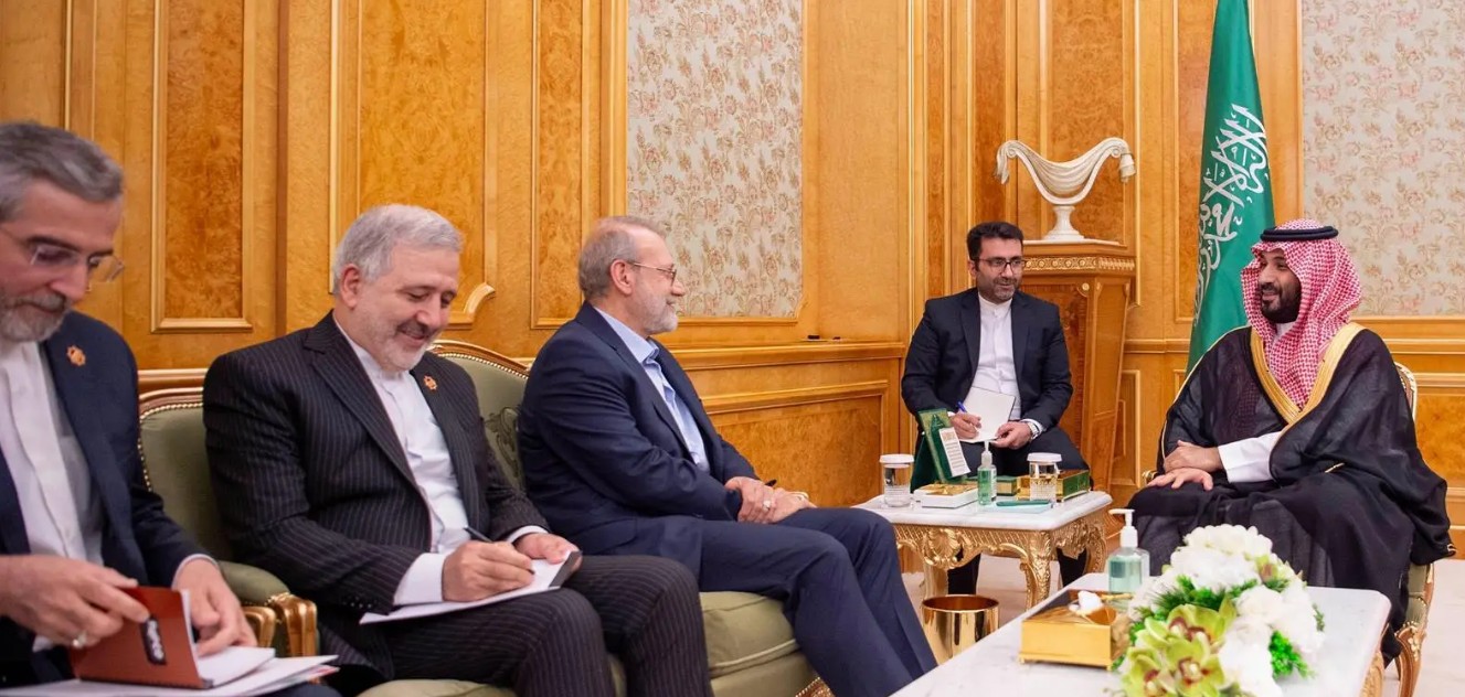 والتقى ولي العهد السعودي محمد بن سلمان مع مستشار الامن القومي الإيراني على لاريجاني في قصر اليمامة وذلك بعد أيام على لقاءات منفصلة مع الرئيس الإيراني على هامش اجتماع الدوحة.