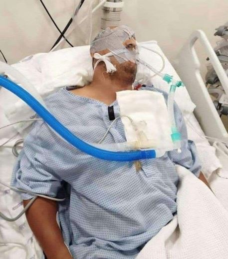 وتظهر الصورة طارق وهو بحالة صحية صعبة .